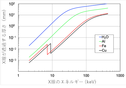 エネルギーが高いほど、金属の透過する厚さが増加します。