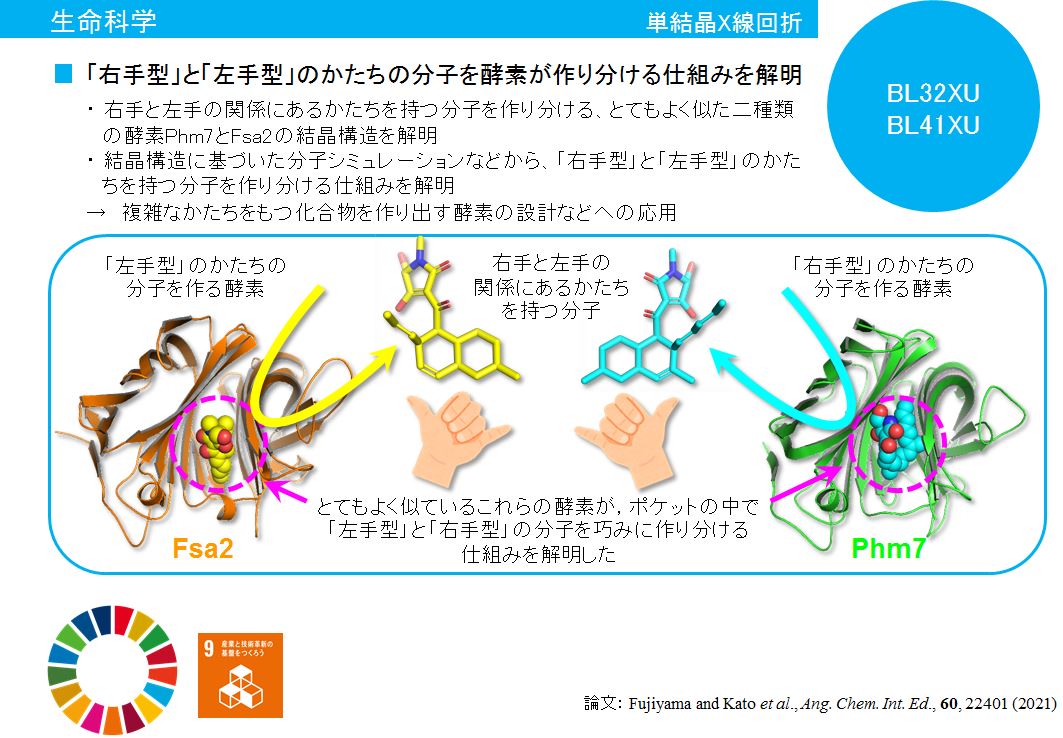 | 「右手型」と「左手型」のかたちの分子を酵素が作り分ける仕組みを解明 |